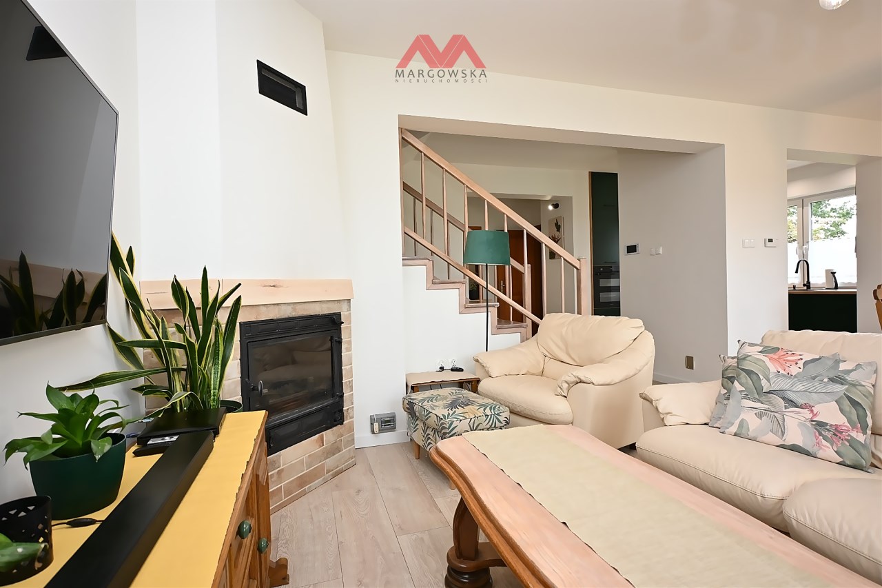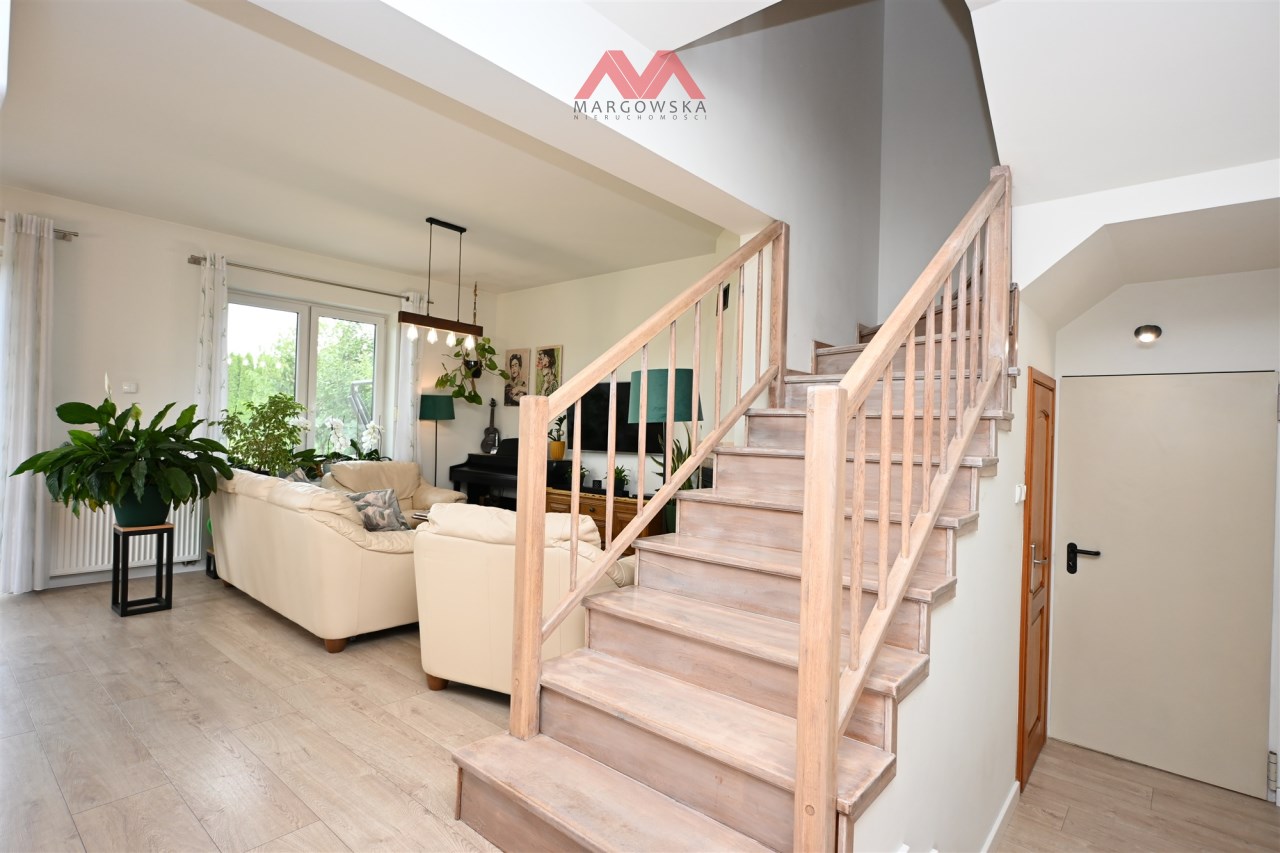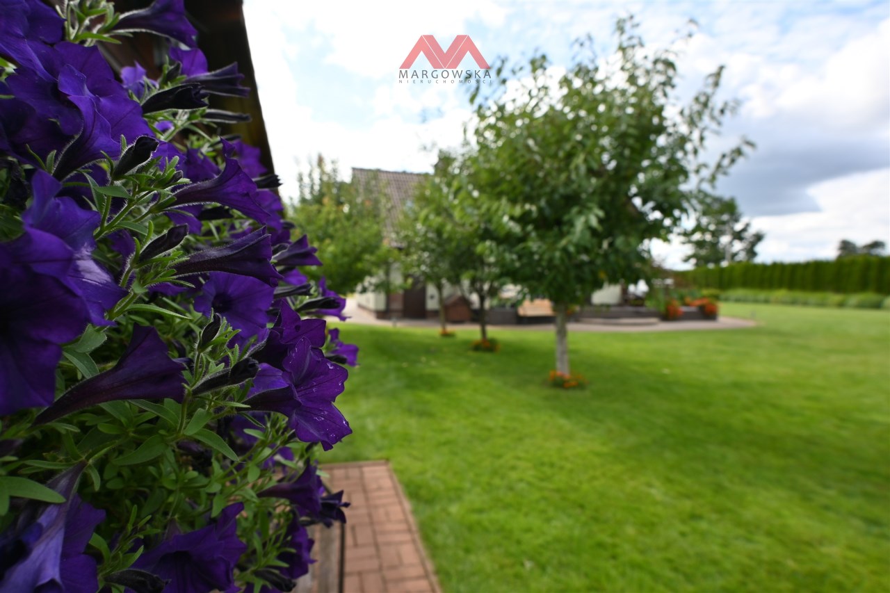 Dom o powierzchni użytkowej ok. 139 m² usytuowany na starannie zagospodarowanej działce o powierzchni 1 380m², w otoczeniu zieleni i rzeki. To propozycja dla osób, które poszukują spokojnego miejsca do życia, z funkcjonalnym rozkładem pomieszczeń i garażem