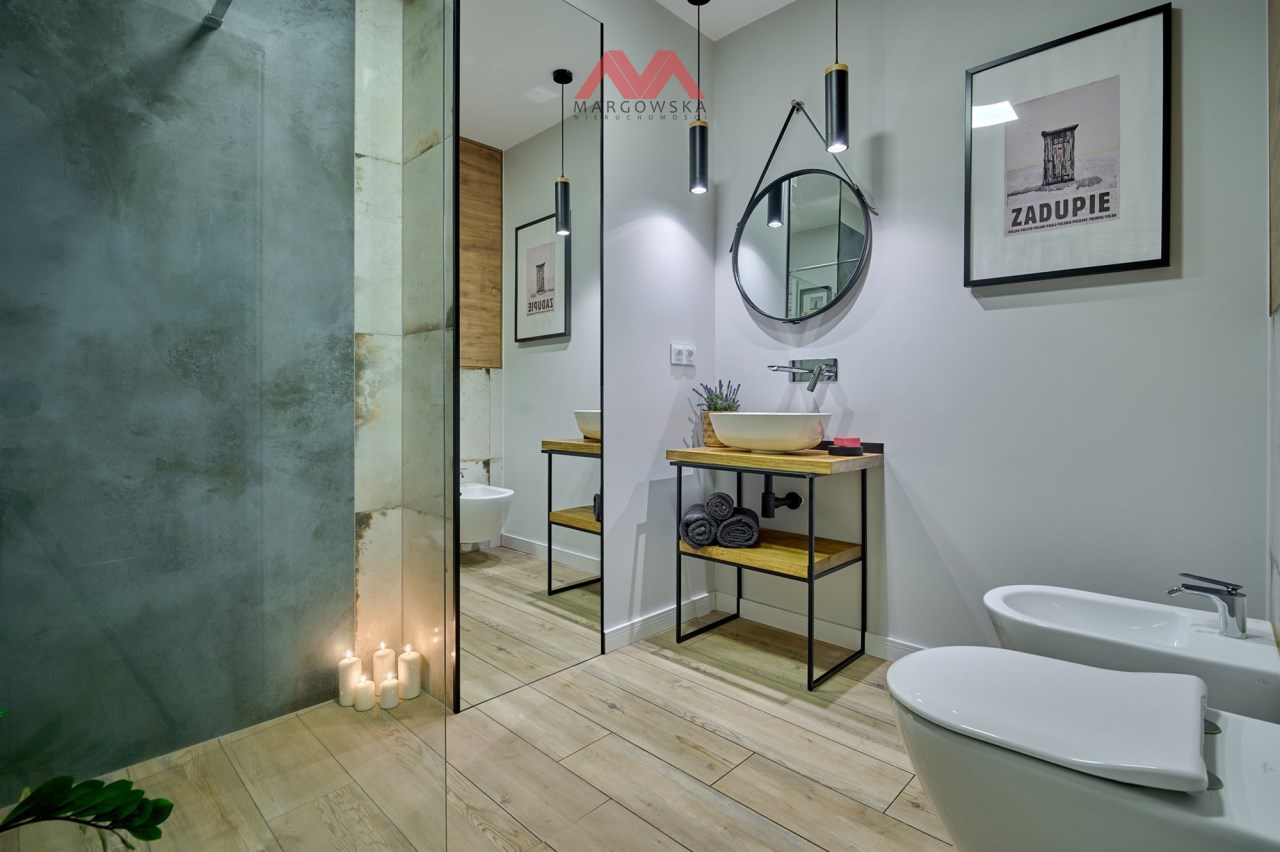 Całość utrzymana jest w spójnym, eleganckim stylu. Wnętrze zdobią ozdobne lamele, cegła oraz starannie dobrane oświetlenie.