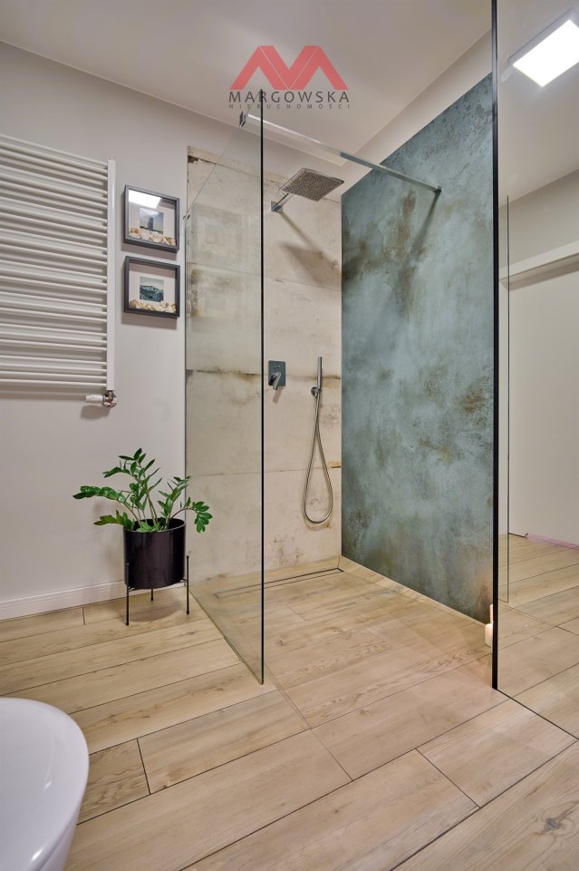 Podłogi wyłożone: GRESS TABLERO BEIGE 160X19 CERAMIKA LIMONE, a wszystkie drzwi wewnętrzne to nowoczesna Porta z ukrytymi zawiasami.
