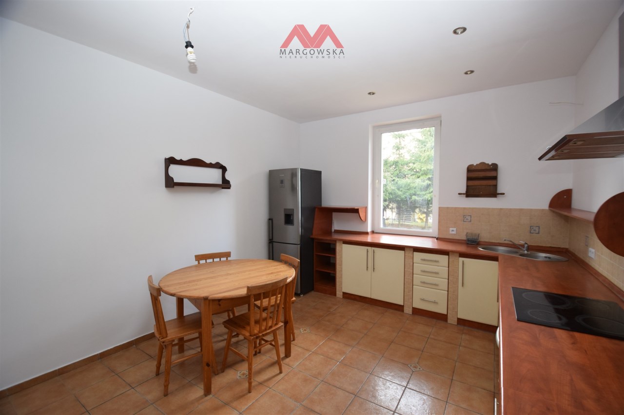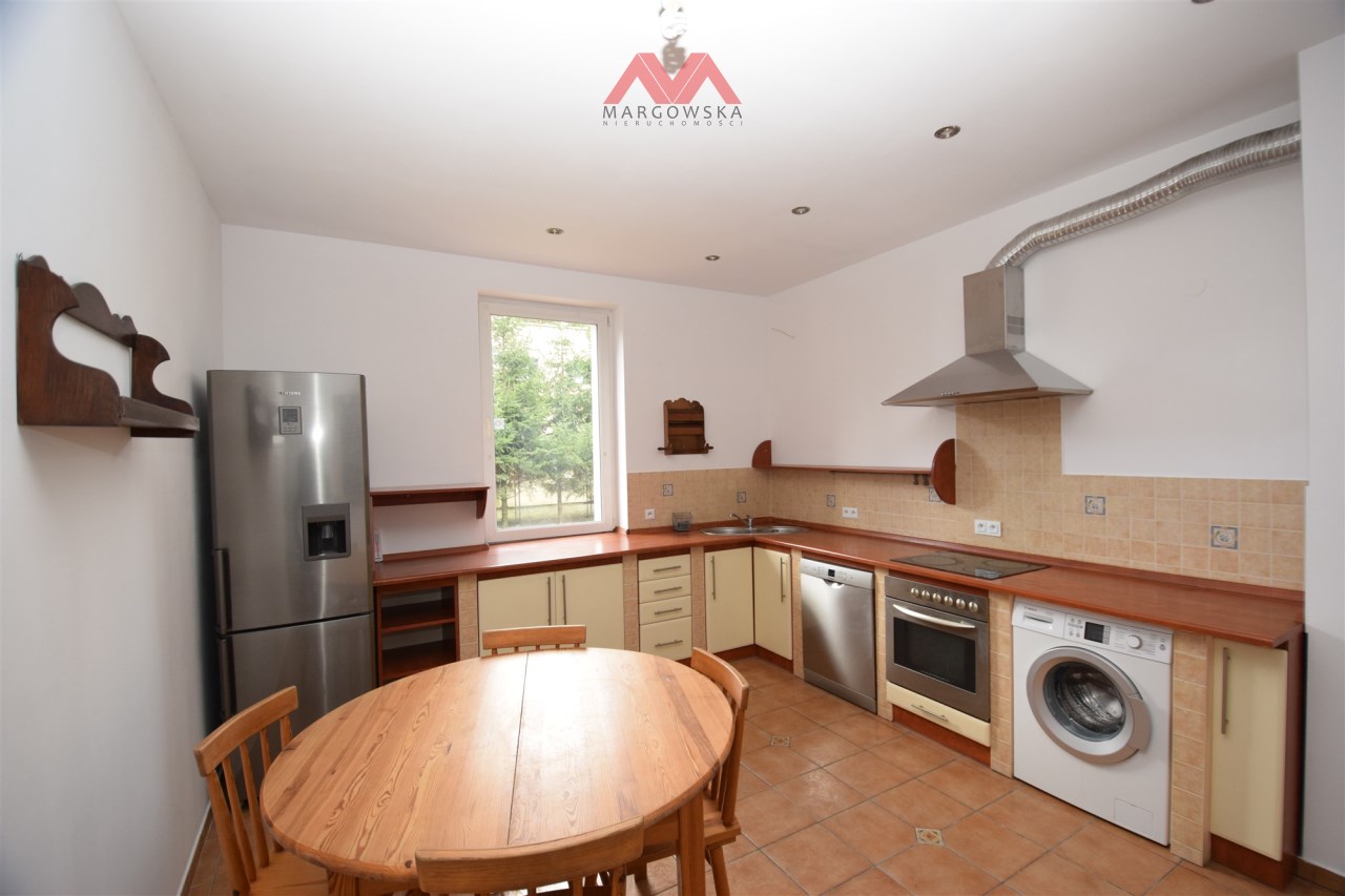 Oddzielna kuchnia o pow. ok. 16m2 z zabudową kuchenną i sprzętami AGD. W kuchni stół umożliwiający wspólne spędzanie czasu z domownikami