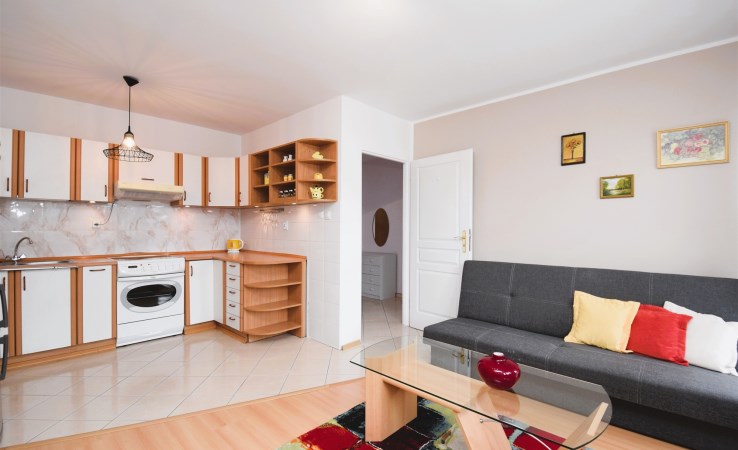| Wyposażenie kuchni | krzesła, lodówko-zamrażarka,, meble kuchenne na wymiar, piekarnik elektryczny, płyta indukcyjna |