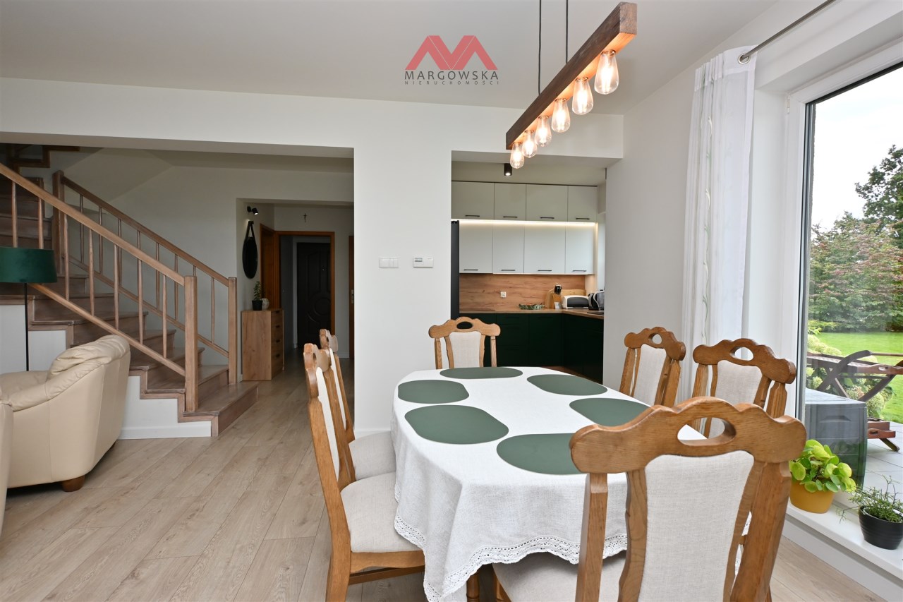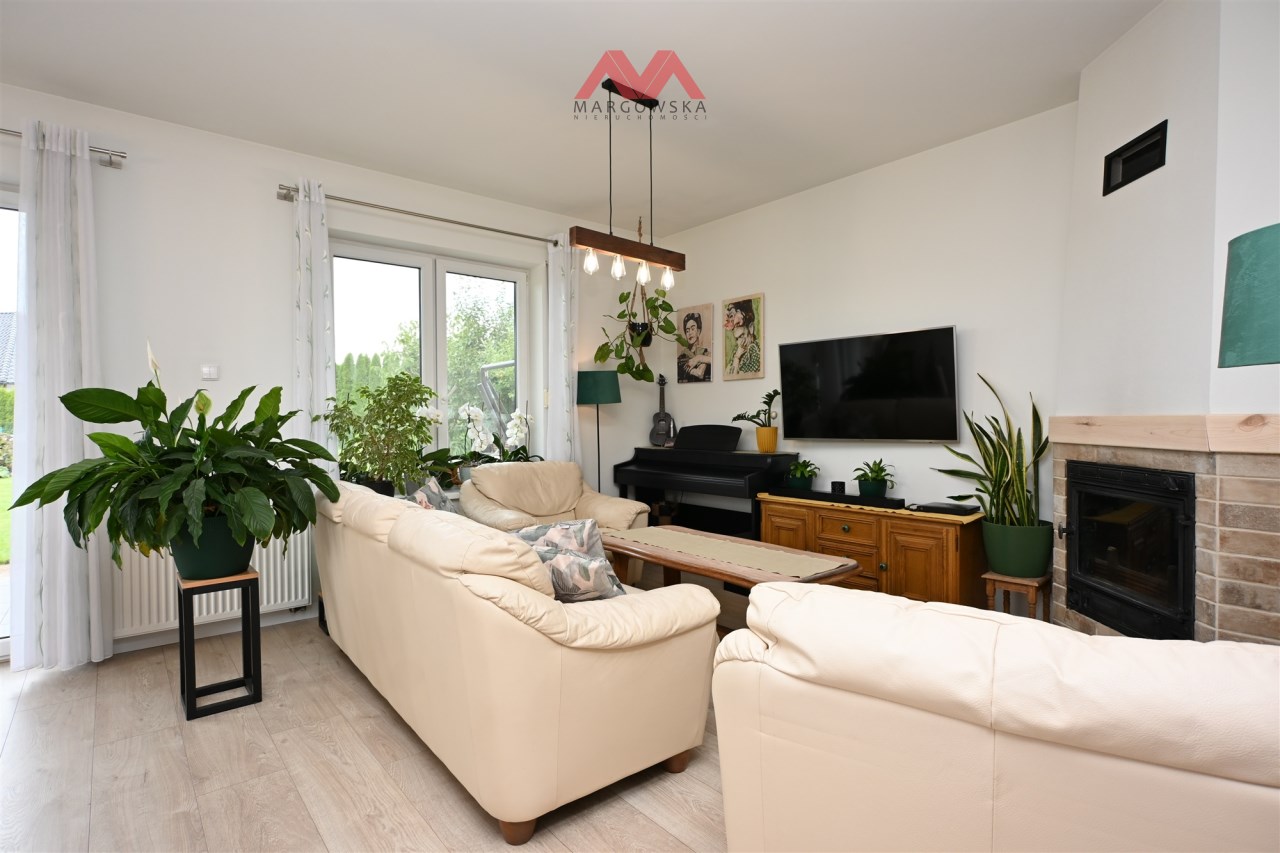 Dom o powierzchni użytkowej ok. 139 m² usytuowany na starannie zagospodarowanej działce o powierzchni 1 380m², w otoczeniu zieleni i rzeki. To propozycja dla osób, które poszukują spokojnego miejsca do życia, z funkcjonalnym rozkładem pomieszczeń i garażem