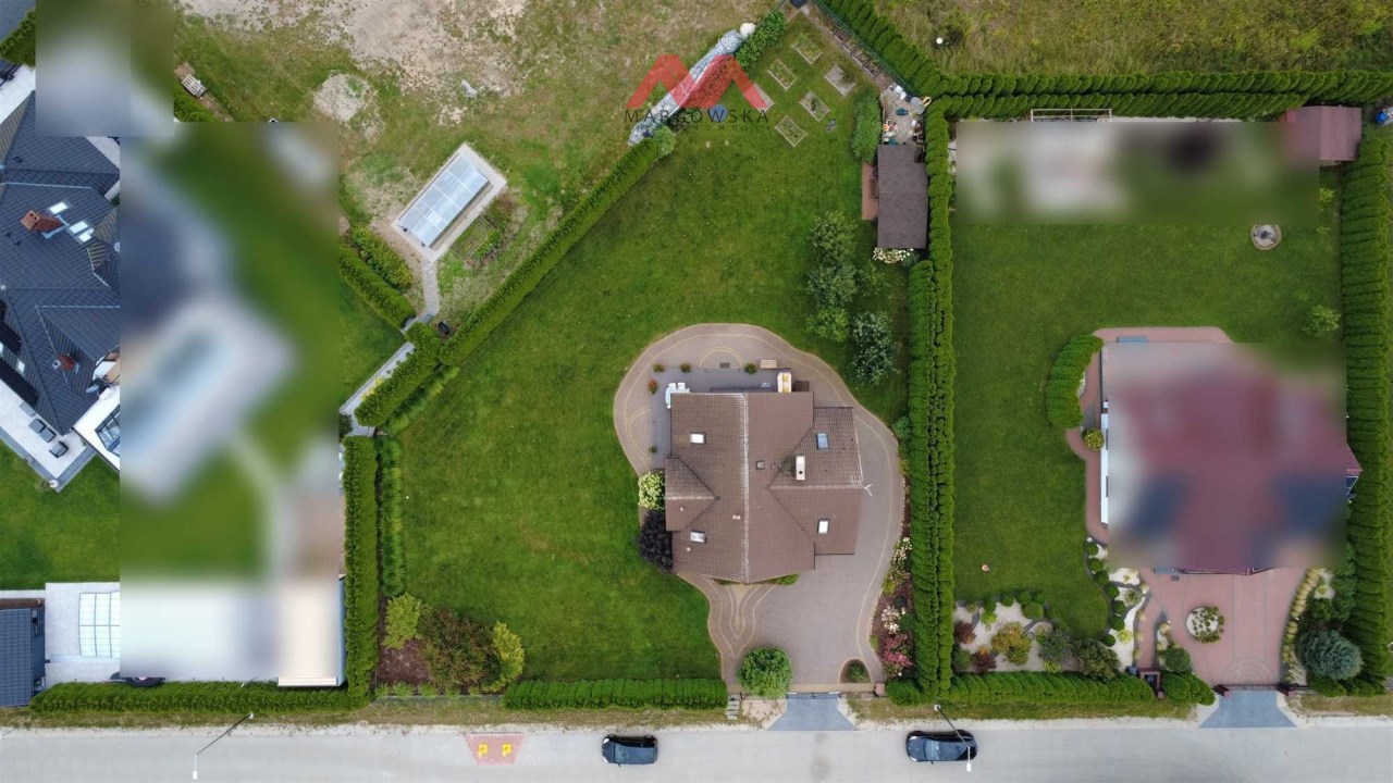 Działka o powierzchni 1380 m² została zaplanowana z dbałością o estetykę i funkcjonalność: