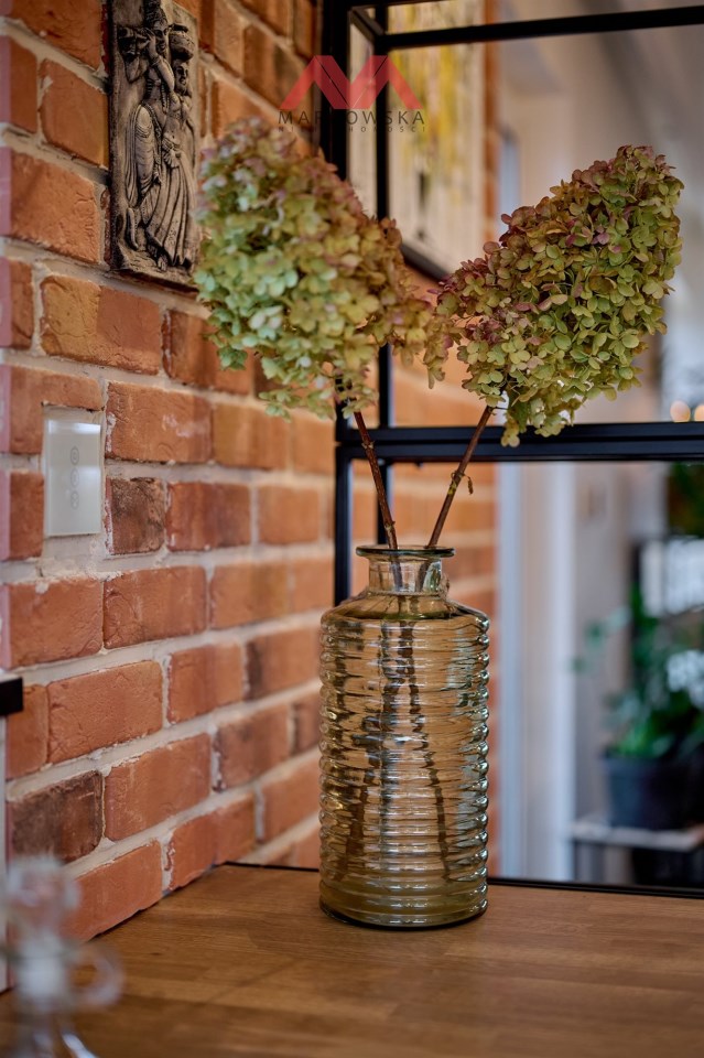 Całość utrzymana jest w spójnym, eleganckim stylu. Wnętrze zdobią ozdobne lamele, cegła oraz starannie dobrane oświetlenie.