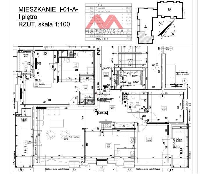 - Powierzchnia: 121,19 m²