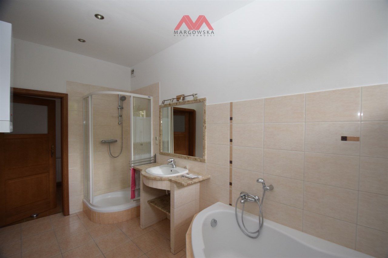Łazienka razem z wc o pow. ok. 9m2. Łazienka wyposażona w wannę i natrysk. Łazienka jasna, z oknem