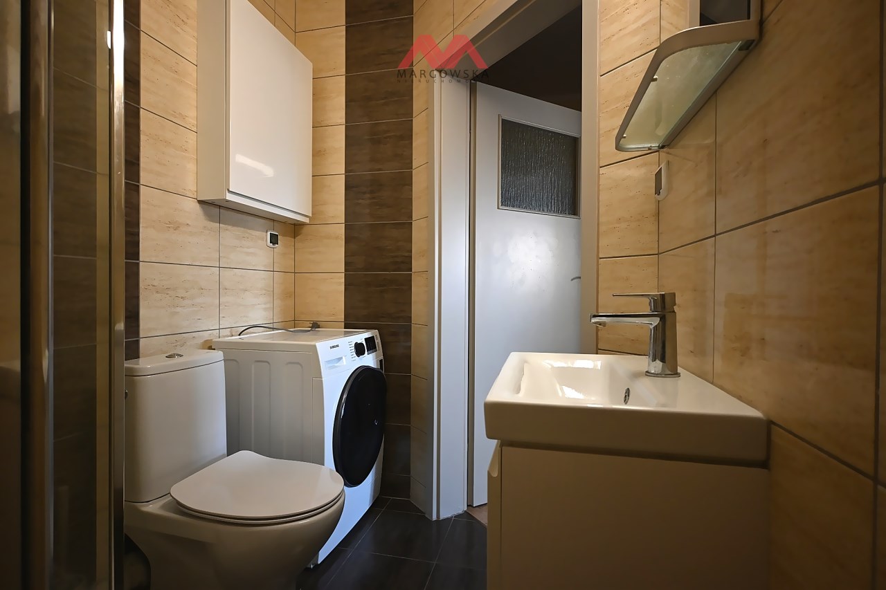| Wyposażenie łazienki | kabina prysznicowa, lustro, pralka, umywalka, WC |